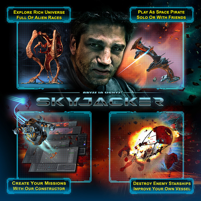 Skyjacker is based on the "Abyss Lights" book series written by our project lead, Eugene Zhukov. The player is the lone human in a galaxy of conflict - abducted by aliens, raised by pirates, wanted by privateers and mercenaries alike. You start on the bottom of the Pirate Stock Exchange and work your way up to the top, not by deliveries and fetch-quests, but through brutal missions like assassinations, sabotage, kidnapping, robberies, infiltration and extractions.