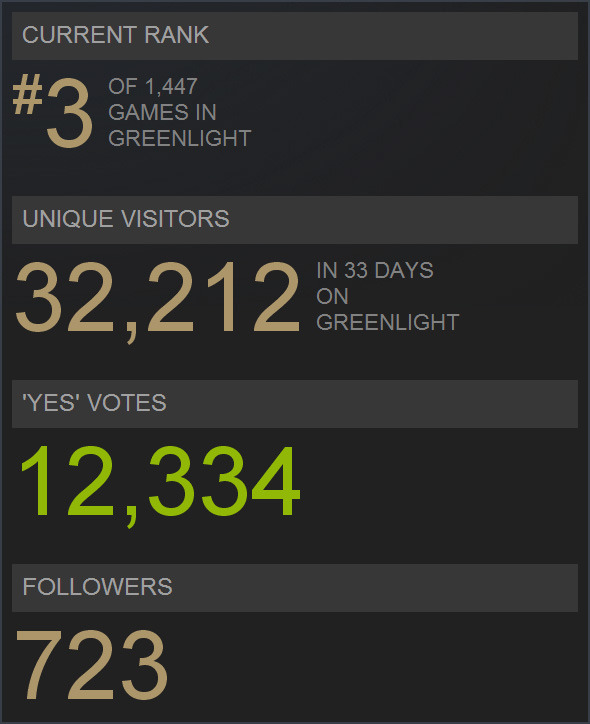 We just advanced to TOP 3 ranking on Steam Greenlight! Of course this could not have happened without your support. We are very happy and fortunate to have you! There might be few that haven't had a chance to vote on Steam Greenlight, so please follow the link and let's capture Rank #1 soon!