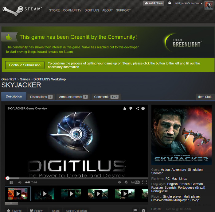 Congrats to Digitilus Skyjacker will be on Steam. :drinks: